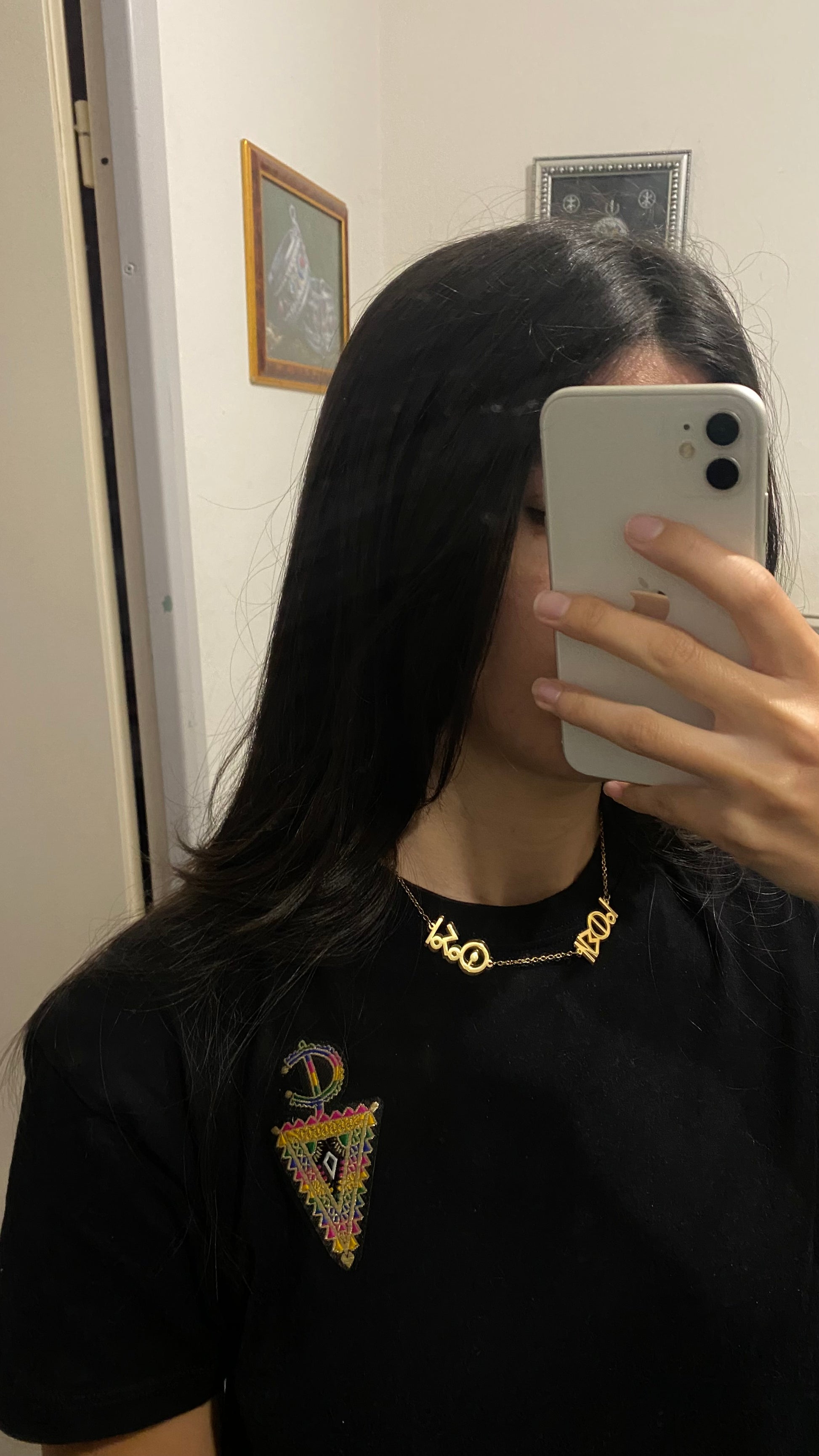 Le collier gravé en tifinagh d'AZRAR en acier inoxydable met en valeur l'écriture millénaire des Berbères, symbole puissant de l'identité amazigh. Chaque bijou est conçu avec soin, représentant votre prénom, celui d'un proche, ou un mot spécial en lettres tifinagh, l'alphabet des amazighs. En portant ce collier, vous affirmez fièrement votre appartenance à une culture riche et authentique. Plus qu'un accessoire, c'est un symbole de vos racines et de votre héritage.